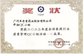 我司两项QC效果再获天下医药行业QC小组运动一等奖